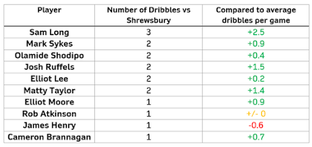 Oxford attempted at least one dribble against Shrewsbury, amounting to a total